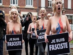 Οι γυμνόστηθες διαδηλώτριες ψάλλοντας ένα αντι-ναζιστικό τραγούδι και φωνάζοντας το σύνθημα «Je suis fasciste», - εμπνευσμένες από το «Je suis Charlie» μετά την επίθεση τρομοκρατών στα γραφεία του περιοδικού «Charlie Hebdo» - πραγματοποίησαν τη διαμαρτυρία τους.